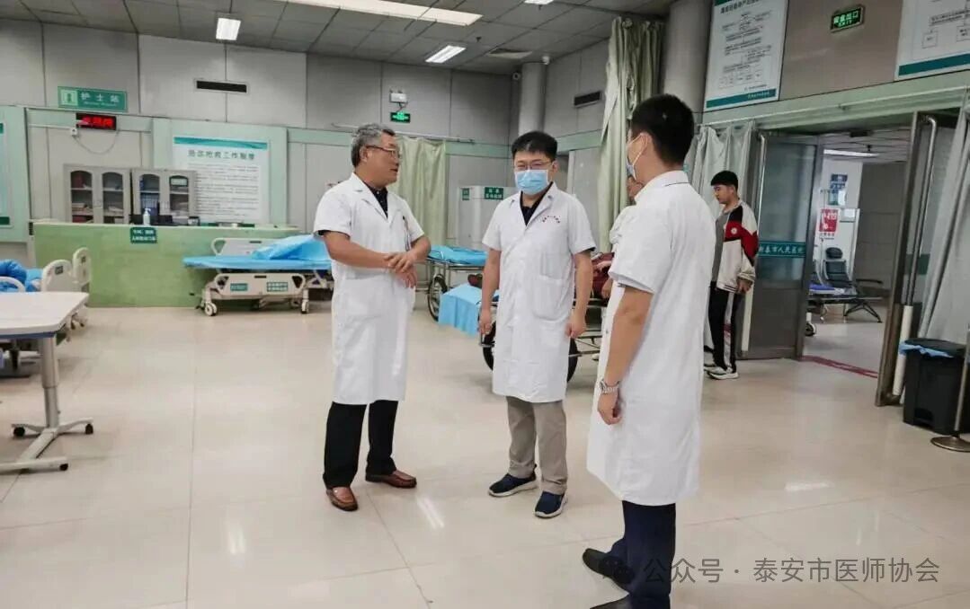 培训结束后,协会组织了省内知名专家教授联合新泰市人民医院多学科专家,赴新泰市青云街道卫生服务中心开展义诊活动,为基层群众提供免费测血压、测血糖、心电图等检查和用药指导、健康咨询等医疗服务,现场氛围热烈,收获在场群众的广泛赞誉。同时,泰安市医师协会急救医学医师分会主任委员、山东第一医科大学第二附属医院急诊医学科岳茂奎主任深入新泰市人民医院急诊医学科,与李超主任针对学科建设、科室发展、质量提升等方面做深入交流,并进行带教查房、病例讨论,拟下一步进行更加深入的合作,努力提升急诊医学科诊疗水平,更好的服务于新泰人民。
